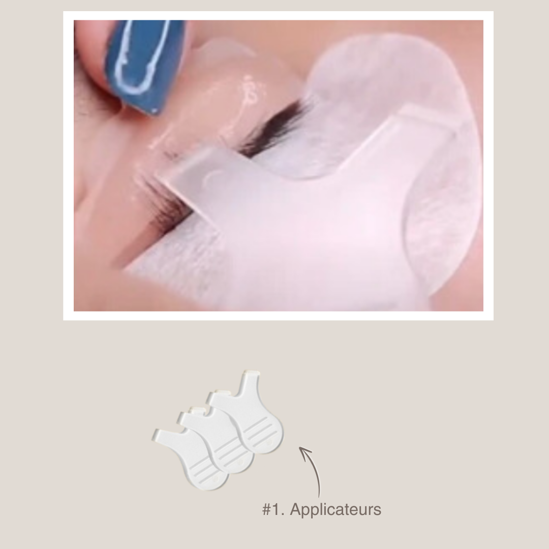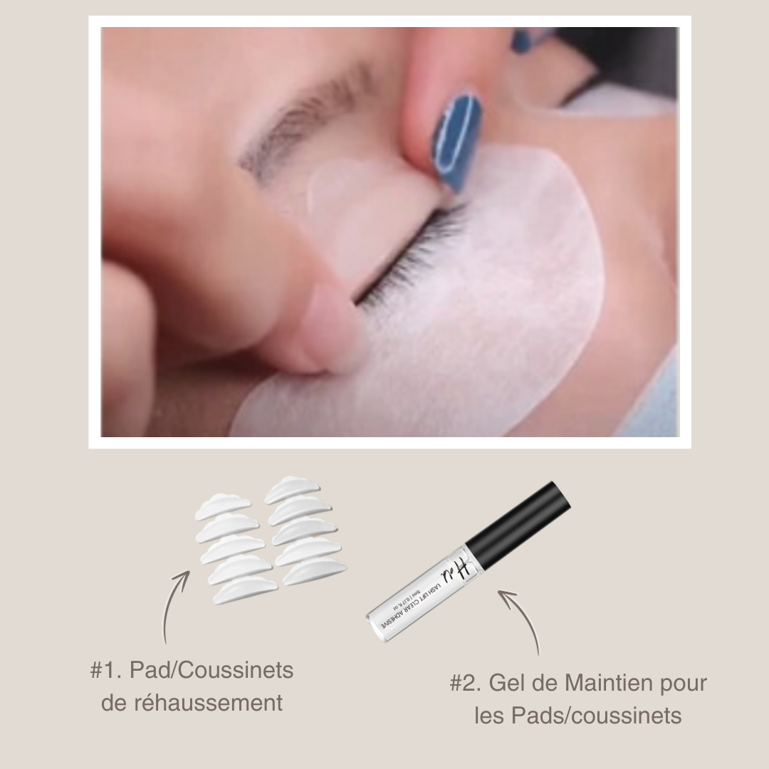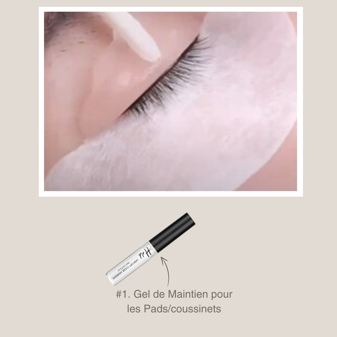 Appliquez le gel de Maintien sur la face intérieure du Pad et attendez 5 à 10 secondes. Positionnez le pad au plus près des racines des cils.
