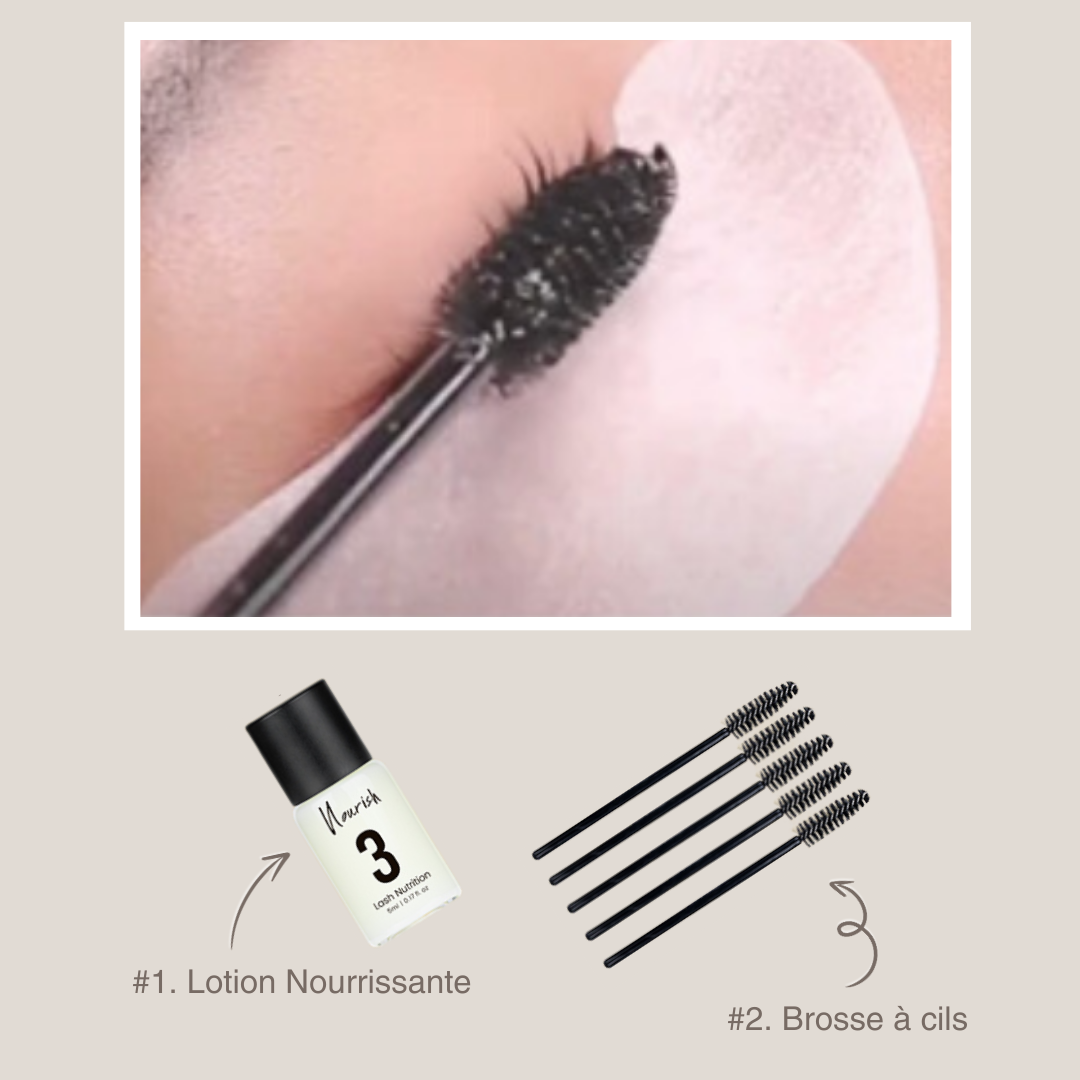 Terminez en Brossant vos cils avec la lotion #3 Nourrissante pour un effet plus brillant et une meilleure tenue.